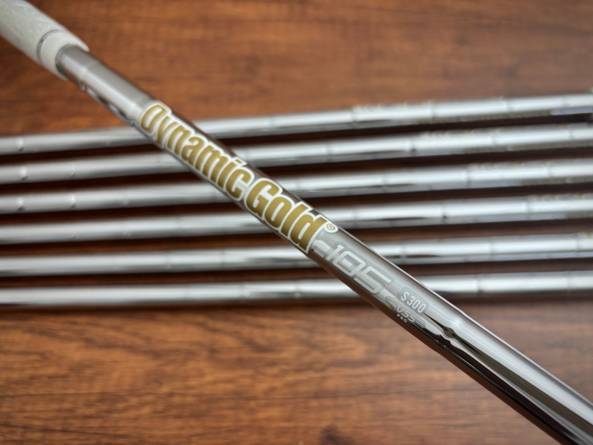 Dynamic Gold S300 stiff steel shafts, and nice golf pride grips