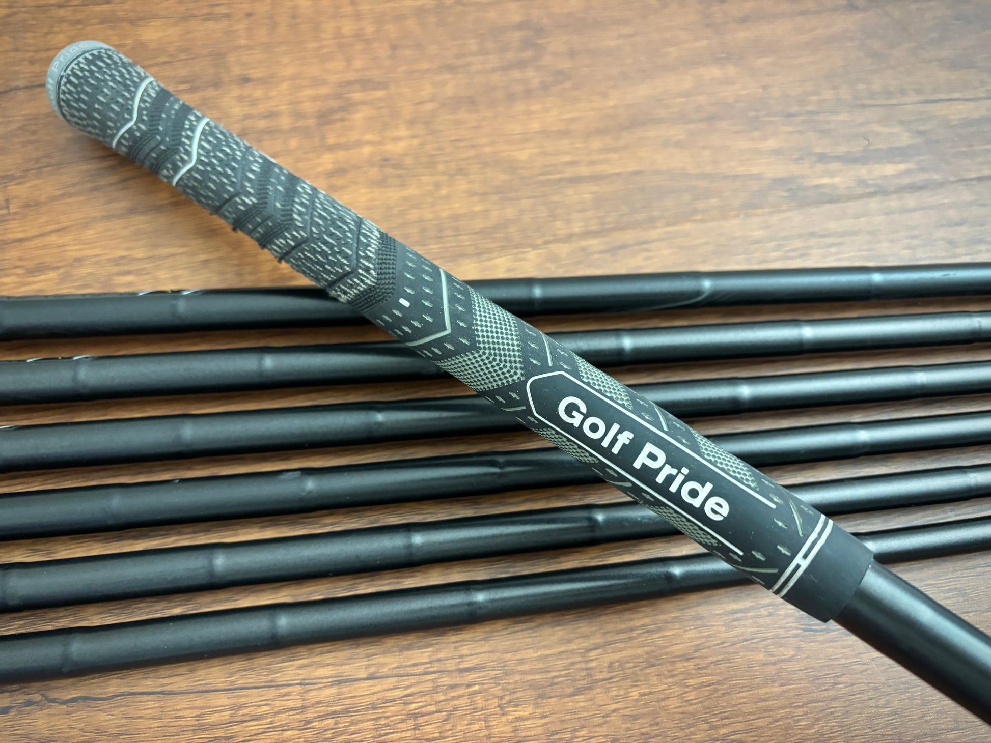 Dynamic Gold X100 x-stiff steel shafts (black), and nice golf pride grips