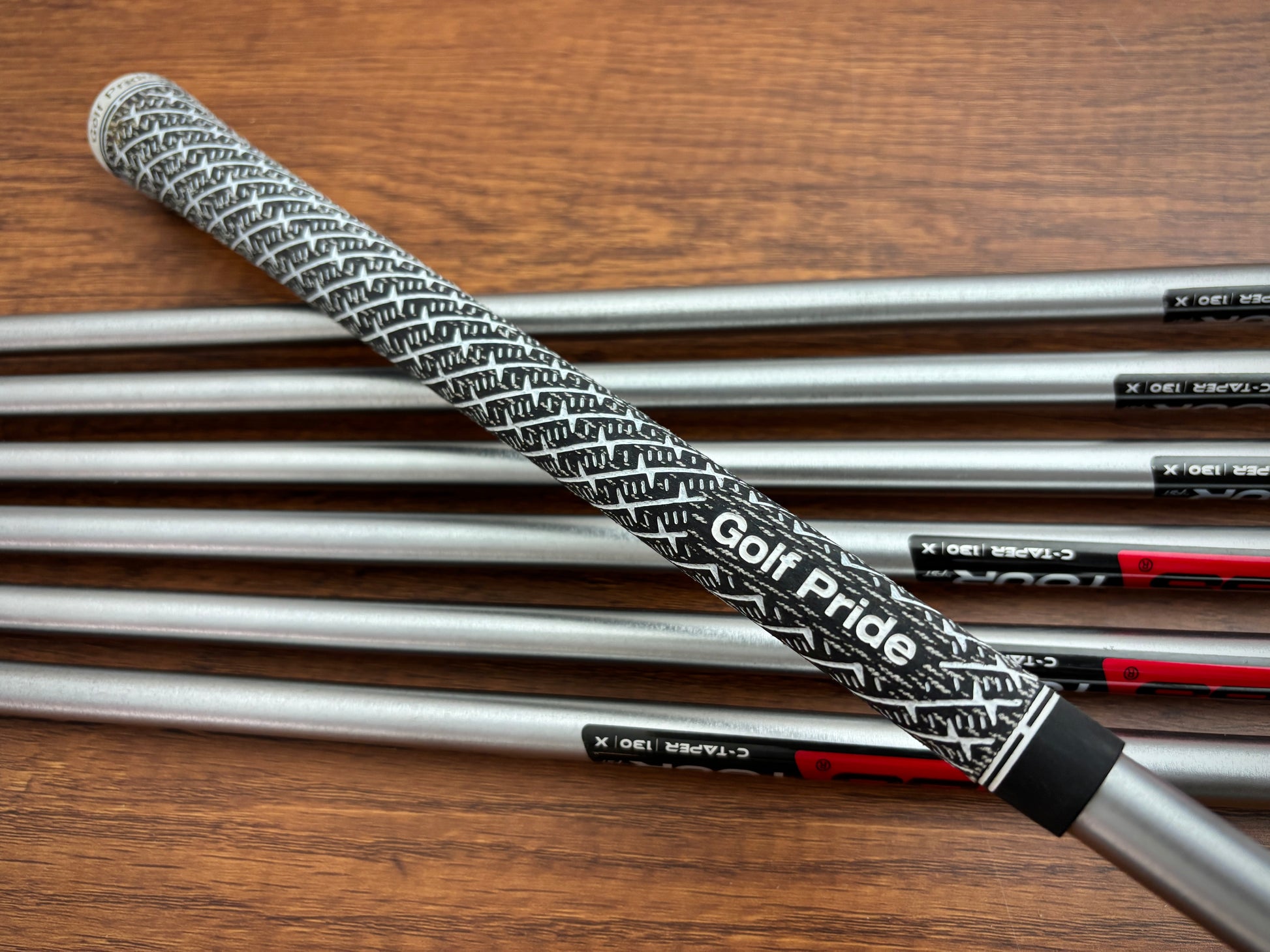 KBS Tour C-Taper 130 x-stiff shafts, and nice golf pride grips