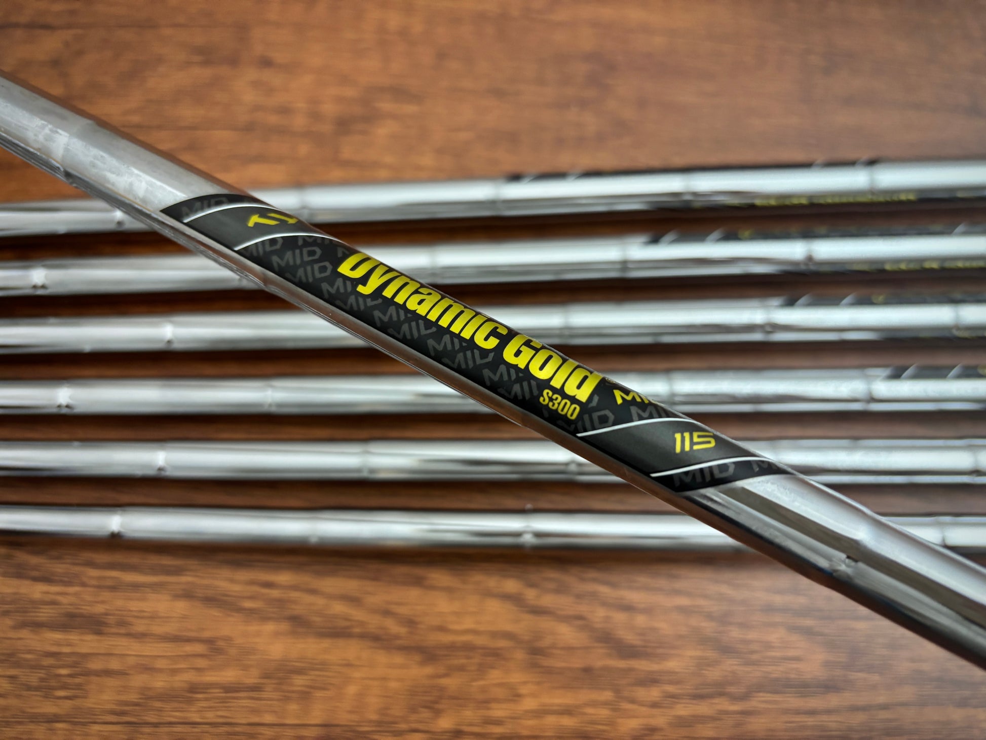 Dynamic Gold S300 stiff steel shafts, and nice golf pride grips