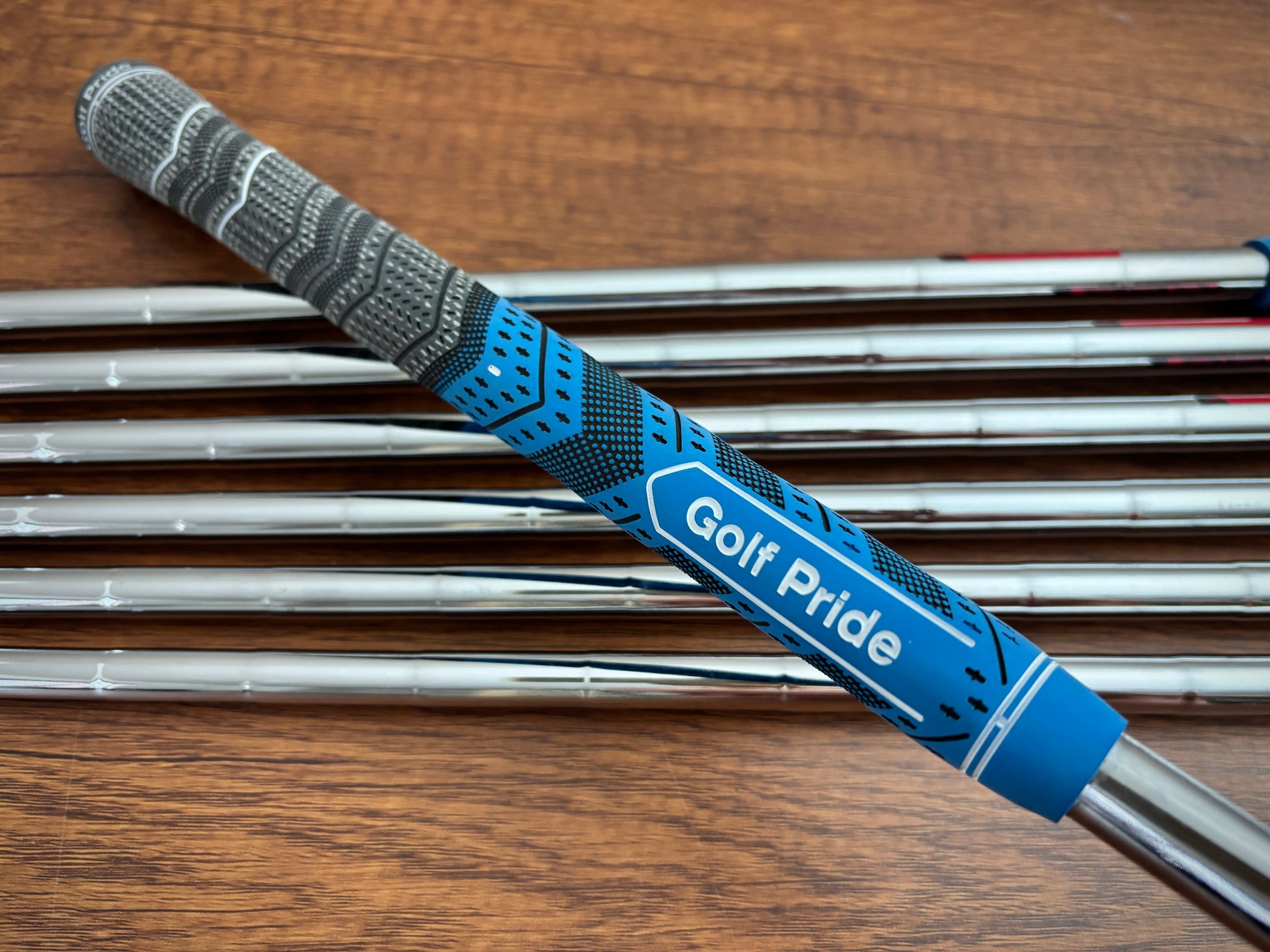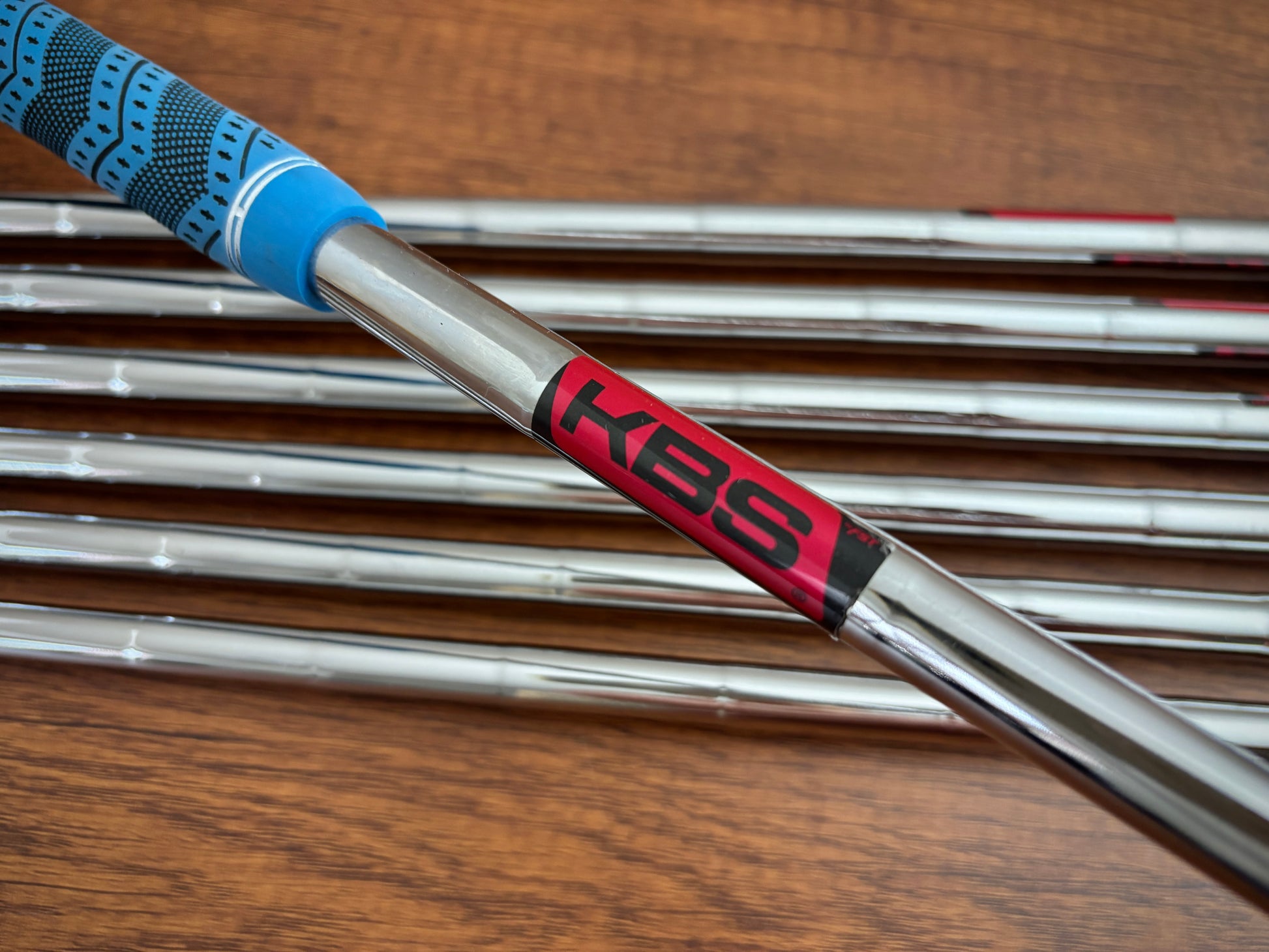 KBS Tour 120 stiff flex shafts, and nice golf pride grips