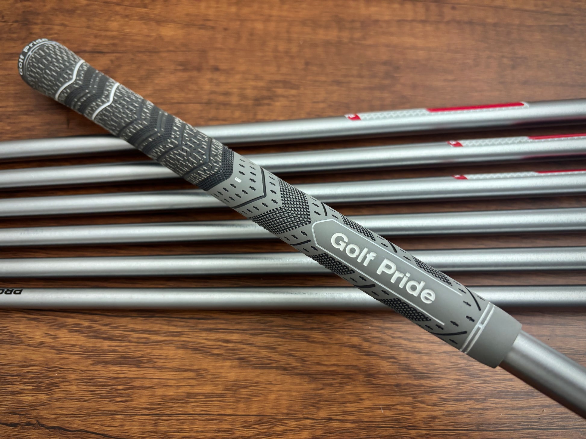 KBS Tour C-Taper Lite 115 x-stiff flex shafts, and nice golf pride grips