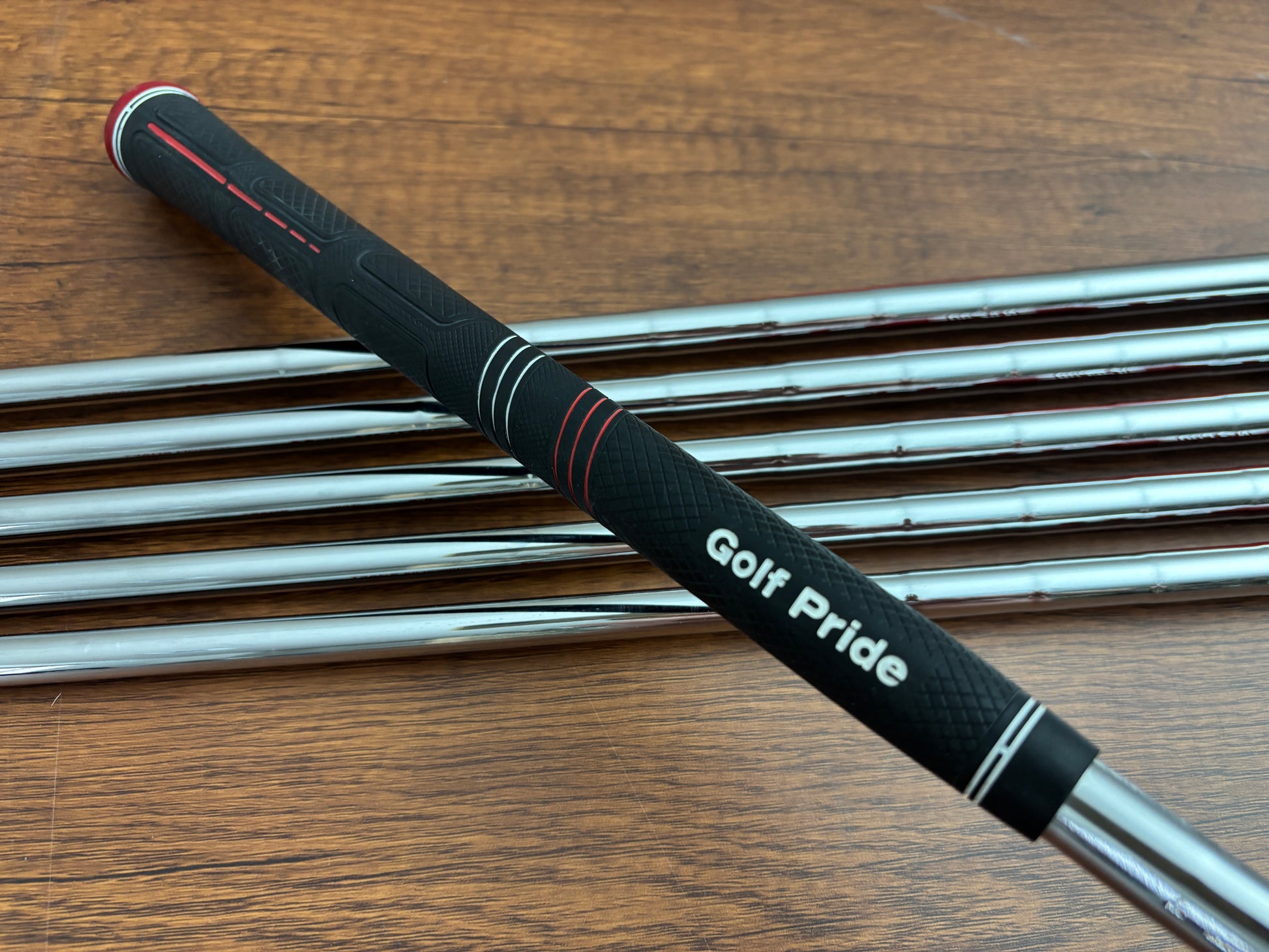 NS Pro 120 x-stiff flex shafts, and nice golf pride grips